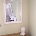 La camera, con vista sulle colline delle Cesane e sulla Chiesa di S. Bernardino, è dotata di ampio bagno privato con lavatrice. Questa stanza, in caso di necessità, può essere abbinata ad una stanza singola, entrambe separate dalla saletta colazione grazie ad un discreto disimpegno, che ne garantisce la più totale privacy.