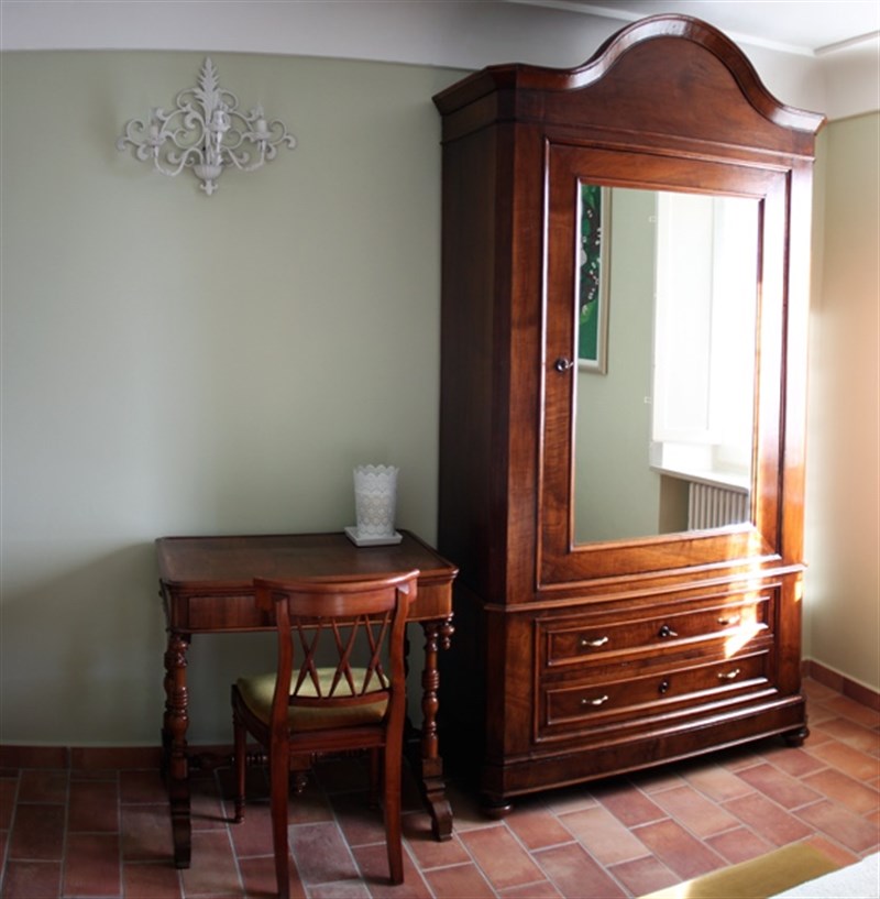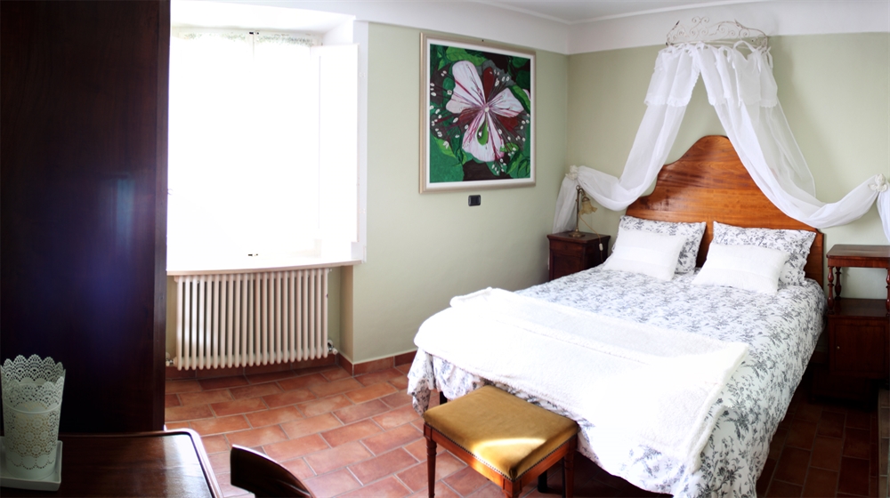 E' dotata di bagno privato con doccia. La camera ha una romantica cabina armadio la cui finestra affaccia sull'antico convento di Santa Chiara e sulle colline circostanti. Questa stanza, in caso di necessità, può essere abbinata ad una stanza singola, entrambe separate dalla saletta colazione grazie ad un discreto disimpegno, che ne garantisce la più totale privacy. Ideale per famiglie con bambini.